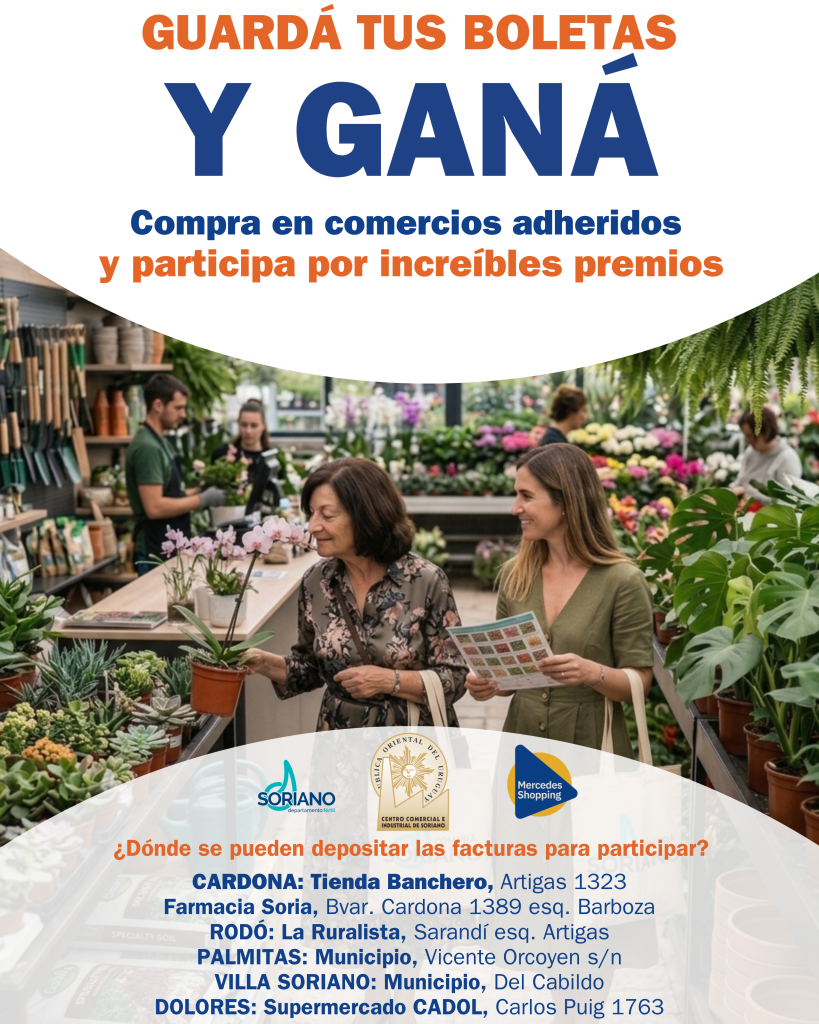 El Centro Comercial e Industrial de Soriano con el apoyo de Mercedes Terminal Shopping y de la Intendencia de Soriano realiza la promoción COMPRÁ SORIANO con el objetivo de fomentar el consumo en los comercios del departamento. DURACIÓN La presente promoción tiene una duración de 3 meses iniciando el 1 de abril del 2026 y […]