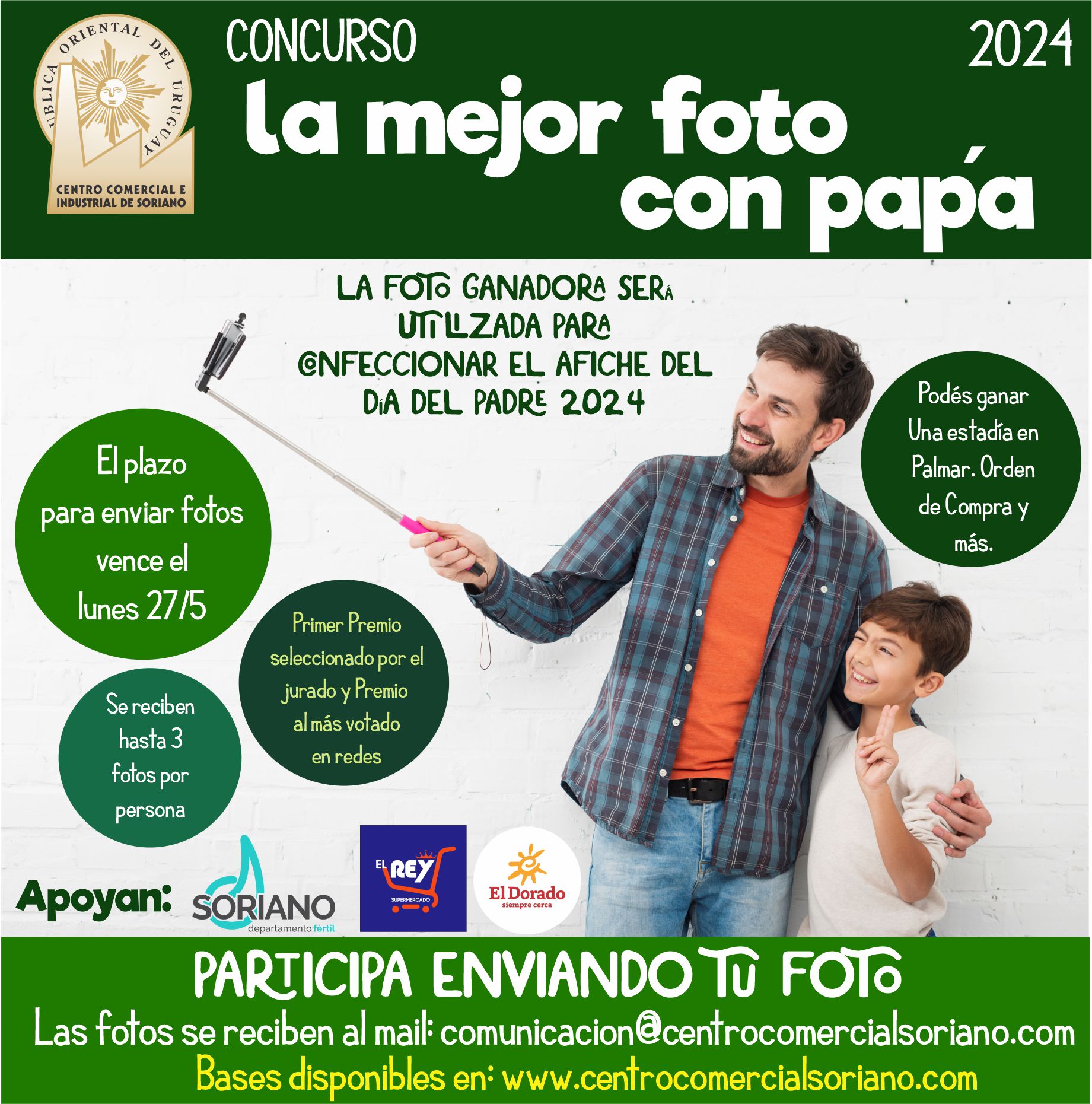 El Jurado seleccionará una foto con la que se realizará el afiche del día del padre 2025 del Centro Comercial. Ese será el “Primer Premio”.