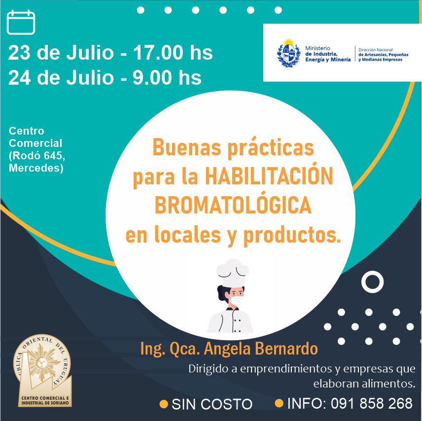Dinapyme y el Centro Comercial e Industrial de Soriano invitan a participar del Taller Buenas prácticas para la HABILITACION BROMATOLÓGICA en locales