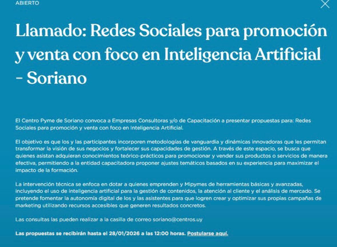 Se realiza un llamado a consultores/as formados y con experiencia en redes sociales, marketing digital e inteligencia artificial, interesados en presentar propuestas