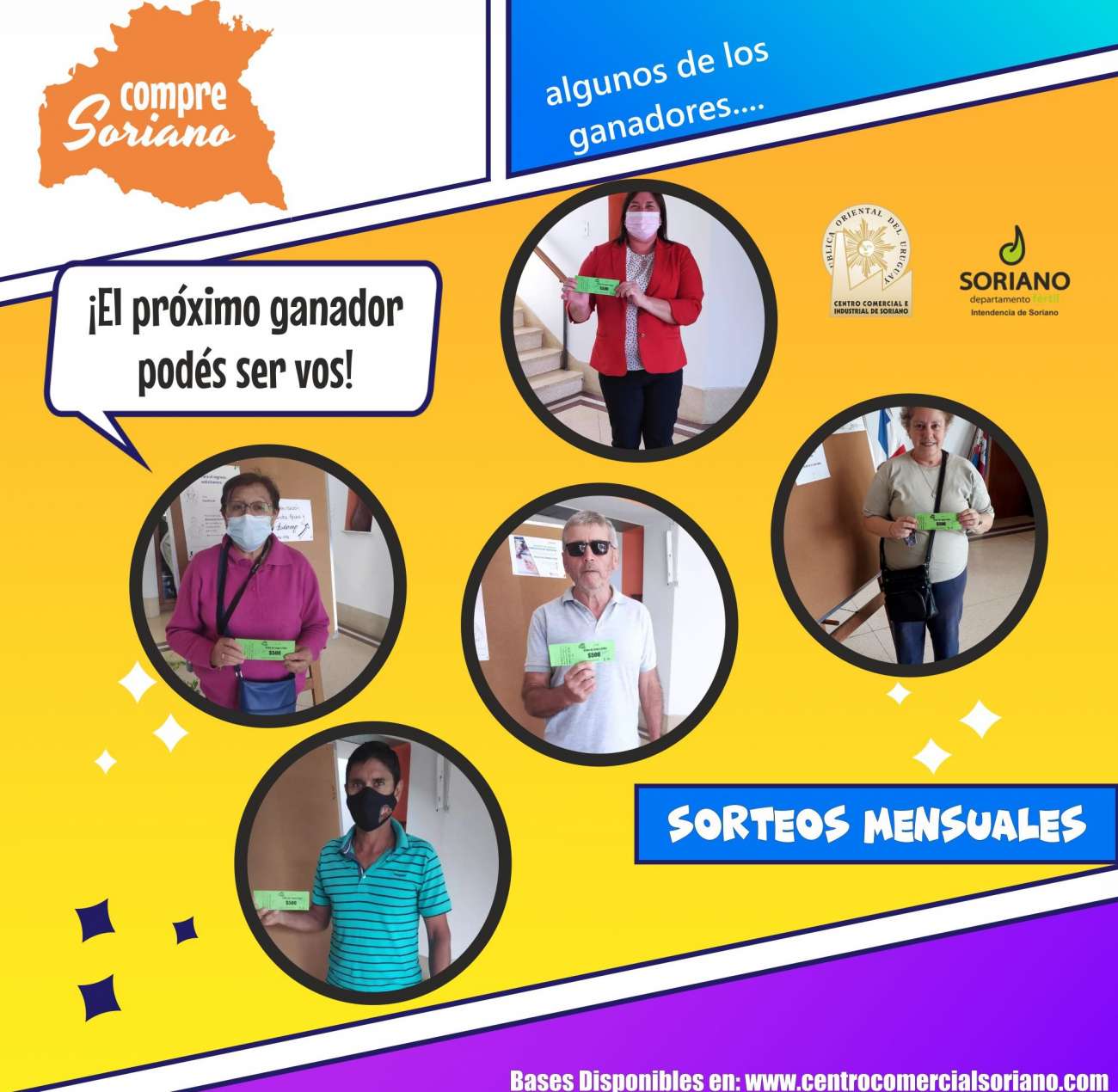 5 ordenes de compra valor 4000 pesos El 2 de mayo se realizó en el Centro Comercial el sorteo de Compre Soriano
