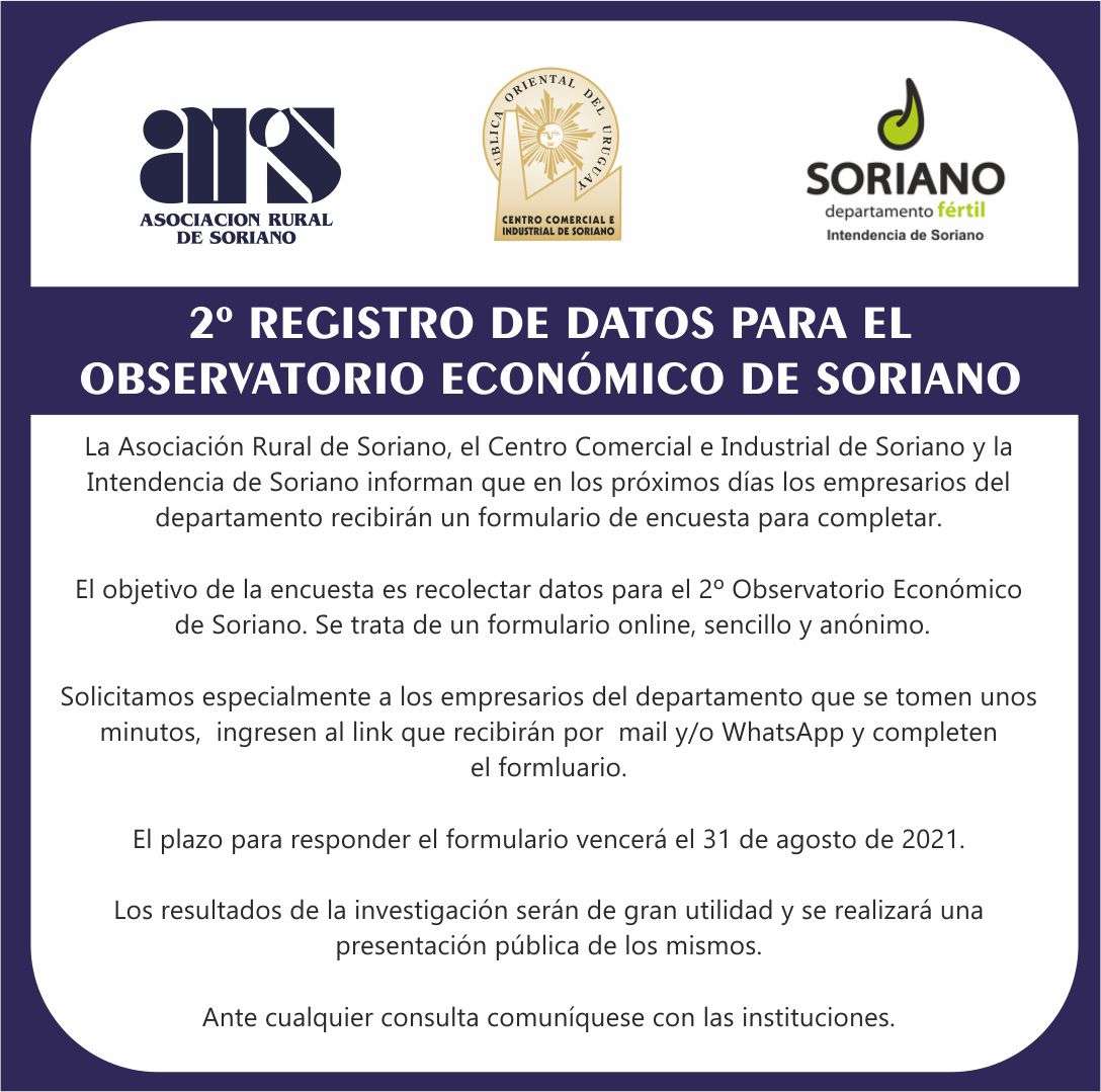 Realización de encuestas La Asociación Rural de Soriano, el Centro Comercial e Industrial de Soriano y la Intendencia de Soriano informan que