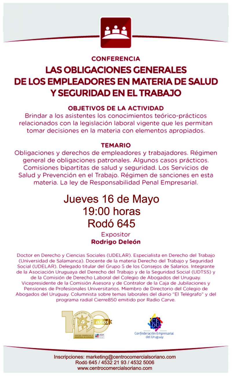 Las obligaciones generales de los empleadores en materia de salud y seguridad en el trabajo Se realizó el pasado Jueves 16 la