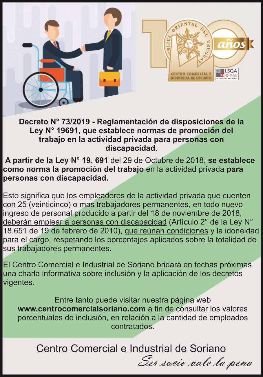 Memoria de actividades del 2018. Brindamos a continuación la Memoria 2018 de actividades del Centro Comercial e Industrial de Soriano.