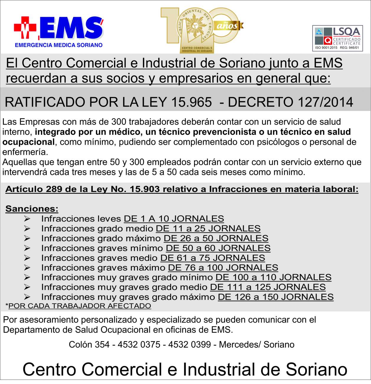 Servicios de Prevención y Salud que las empresas deben brindar en el trabajo Análisis del decreto 127/014. Aprobado el decreto 127/014 (publicado