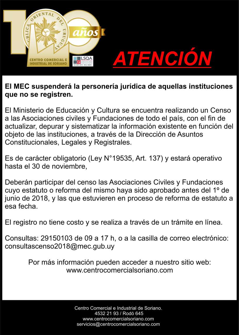 Importante: El Ministerio de Educación y Cultura se encuentra realizando un Censo a las Asociaciones civiles y Fundaciones de todo el país,