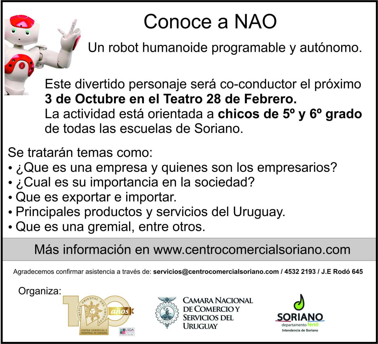 3 de Octubre / Teatro 28 de Febrero. Se trata de un robot humanoide, programable y autónomo que pretende sorprender a las