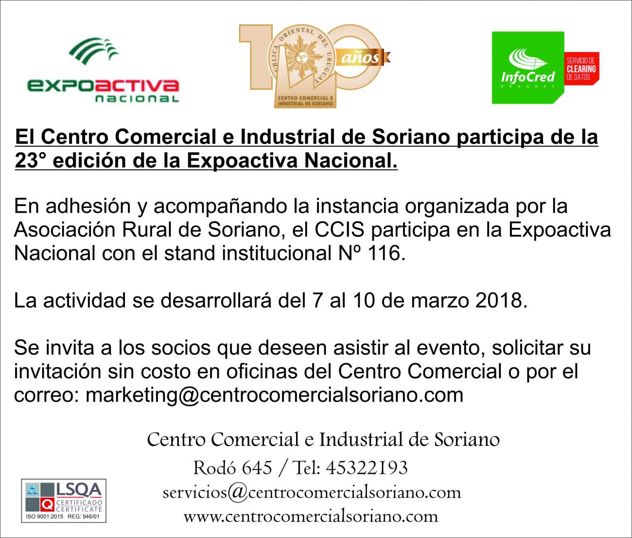 Invitación a los socios. El Centro Comercial e Industrial de Soriano invita a sus socios a visitar desde el 7 al 10