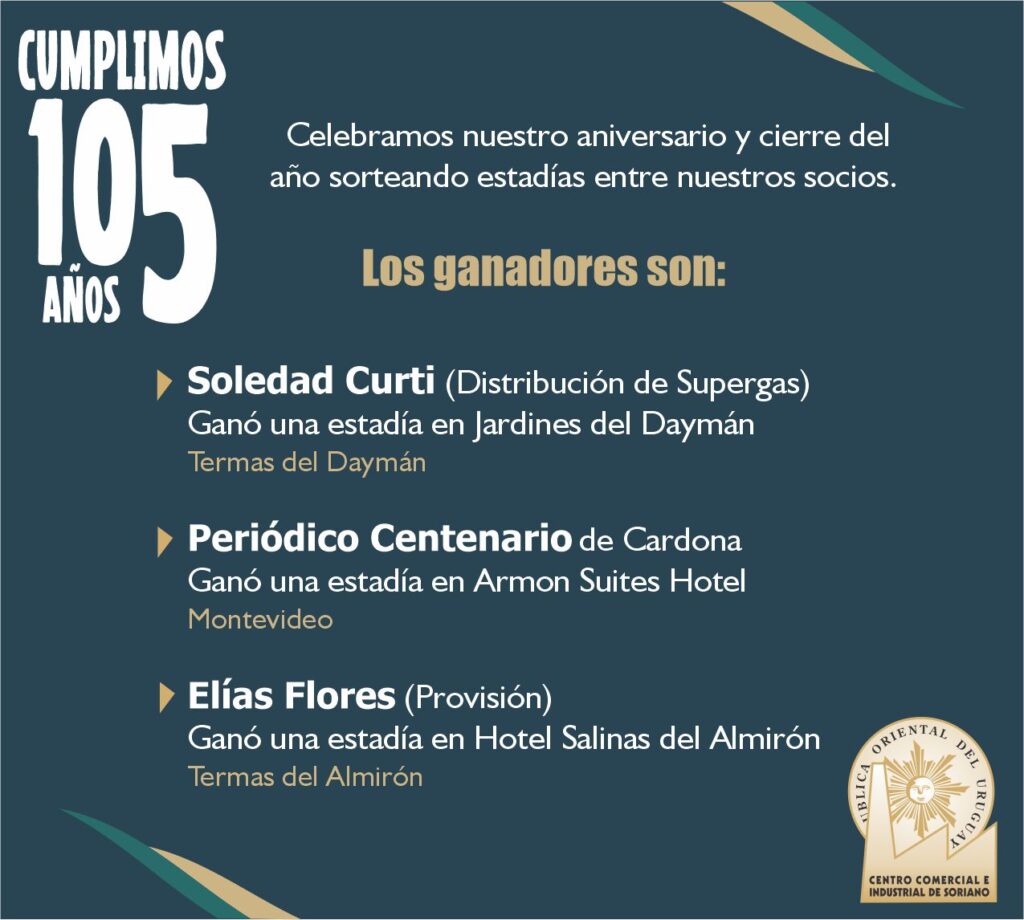 Con motivo de nuestro 105° Aniversario hicimos un sorteo para premiar a nuestros socios.